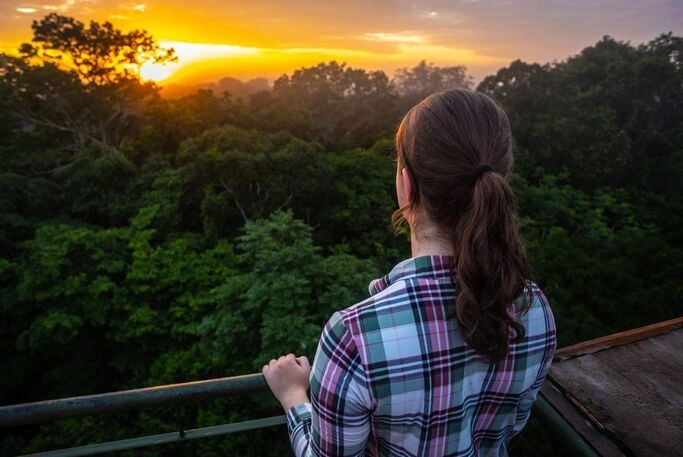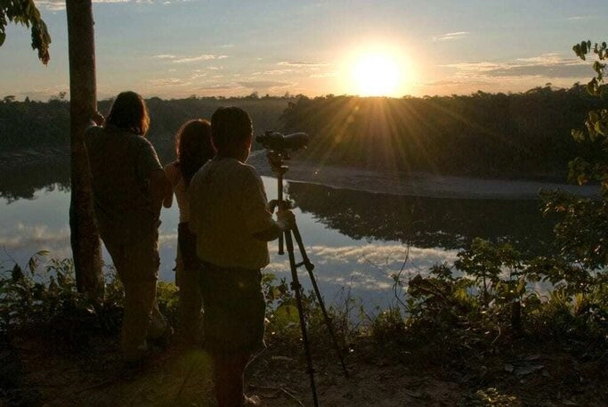 Förmiddagsflyg från Cusco till Puerto Maldonado i Amazonas, öster om Anderna. Lodgens naturguider välkomnar innan den 45 minuter långa motorkanotfärden på Tambopatafloden till regnskogslodgen Posada Amazonas. Den ägs av ese eja-indianerna och ligger vid Tambopatareservatet. Området är känt för fin primärregnskog och rik flora och fauna. De enkla, trivsamma bungalowerna är byggda av material från regnskogen. Den första vandringen i regnskogen leder fram till ett 30 meter högt utkikstorn med fantastisk utsikt över trädtopparna. Här kan man spana efter tukaner, papegojor och andra tropiska fåglar innan det är dags för middag. När mörkret sänker sig berättar de gärna mer om de eko-projekt som pågår i området, både för att bevara den artrika miljön och för att främja lokalbefolkningens livsvillkor.