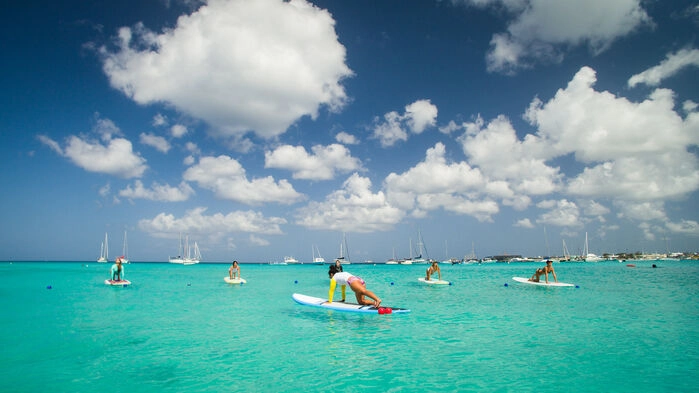Man lämnar fastlandet med katamaran och följer Barbados västsida, där havet är lugnt och klart. Under dagen görs stopp för snorkling...
