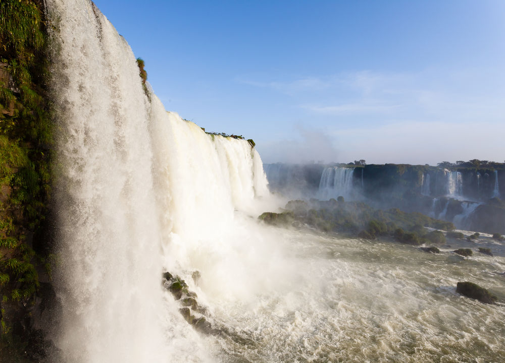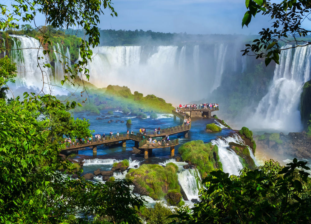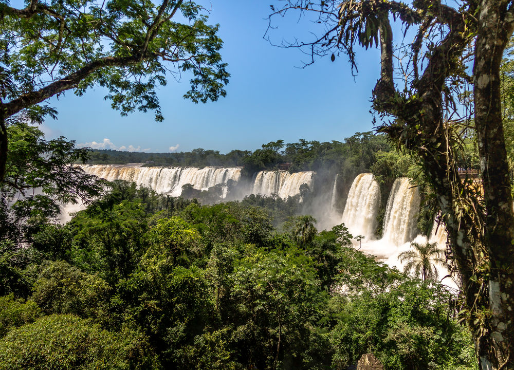 Dag 2. Brasilianska sidan av vattenfallen. Upphämtning på hotellet och transport till den del av fallen som tillhör Brasilien. Den här sidan ger en mer storslagen utsikt över hela de mäktiga fallen. Gångvägar leder ner till själva crescendot som kallas "Djävulsgapet". Ljudet är öronbedövande och räkna med att bli våt från de moln av vattendroppar som stiger upp i skyn. Övernattning på Recanto Cataratas. [F]