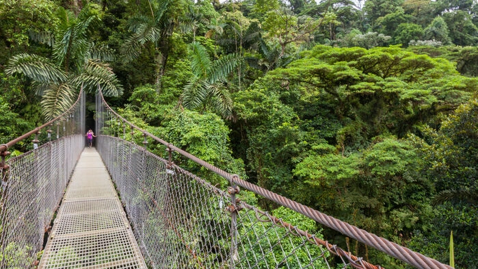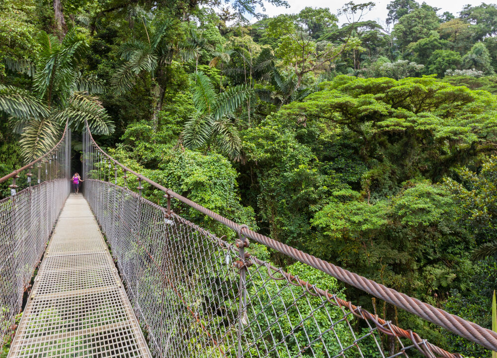 Bland trädkronorna i Arenal Mistico Park går ett antal hängande broar som ger möjlighet att uppskatta regnskogen ur ett fågelperspektiv. Under en halvdag görs vandringen på i parken på gångvägar såväl som hängbroar och leds av en naturalistguide som berättar om den rika biologiska mångfalden utöver en hänförande utsikt med vulkanen Arenal i bakgrunden. Chansen att se vilda djur finns och exempel på arter här är sengångare, fåglar som t ex tukan, ormar, apor m.m. Vandringen i sig är inte ansträngande och tar cirka 2,5 timmar.