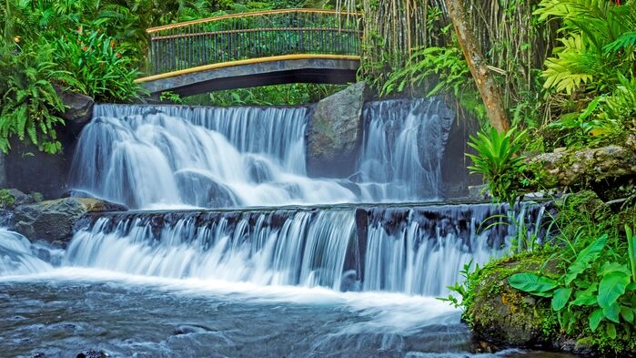 Dagen tillbringas efter eget förfogande, men passa självklart på att bada i de varma och heta källorna, de så unika bassängerna med mineraler som kalibrerar kroppen och sinnet och gör gott för själen. Tabacón erbjuder olika naturliga bassänger där vattentemperaturen varierar. Här välkomnas alla. I hotellets mer stillsamma avdelning, i romantiska Shangri-la Gardens, välkomnas endast hotellets gäster och endast vuxna. På små gångar orienterar man sig genom en tätbevuxen trädgård mellan olika nivåer där känslan av zen genomsyrar ens närvaro.