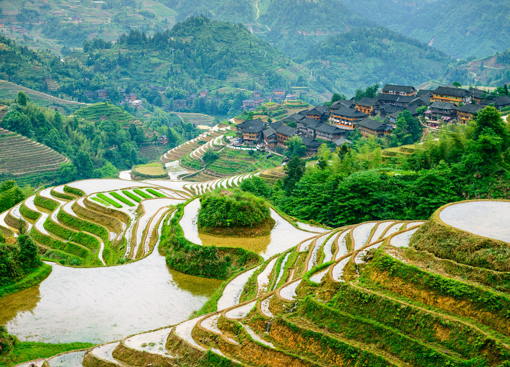 Efter frukost flyger vi söderut till Guilin, en stad omgiven av några av Kinas mest magnifika landskap. Vid ankomsten transporteras vi till Longsheng och vidare upp till de fascinerande Longji-risterrasserna, kända som "Drakens ryggrad". Här slingrar sig terrasserna längs de branta bergssluttningarna och skapar en vacker vy som förändras med årstiderna. Vi checkar in på vårt hotell och avnjuter en lugn middag med utsikt över terrasserna.