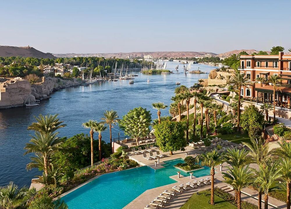 Hotellet öppnade ursprungligen 1899 och kombinerar traditionell arkitektur med modern service. Här finns bland annat infinity­pool med utsikt över Nilen, spaområde, flera restauranger och barer samt terrasser ut mot floden, vilket ger en tydlig känsla av plats och stillhet.