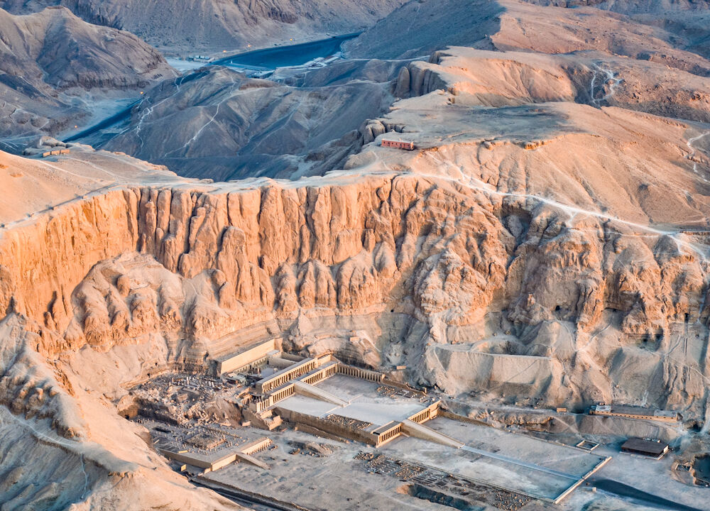 Gryningen över Luxor är stilla och klar. Vi korsar Nilen till den västra stranden, där öknen möter bergen i ett...