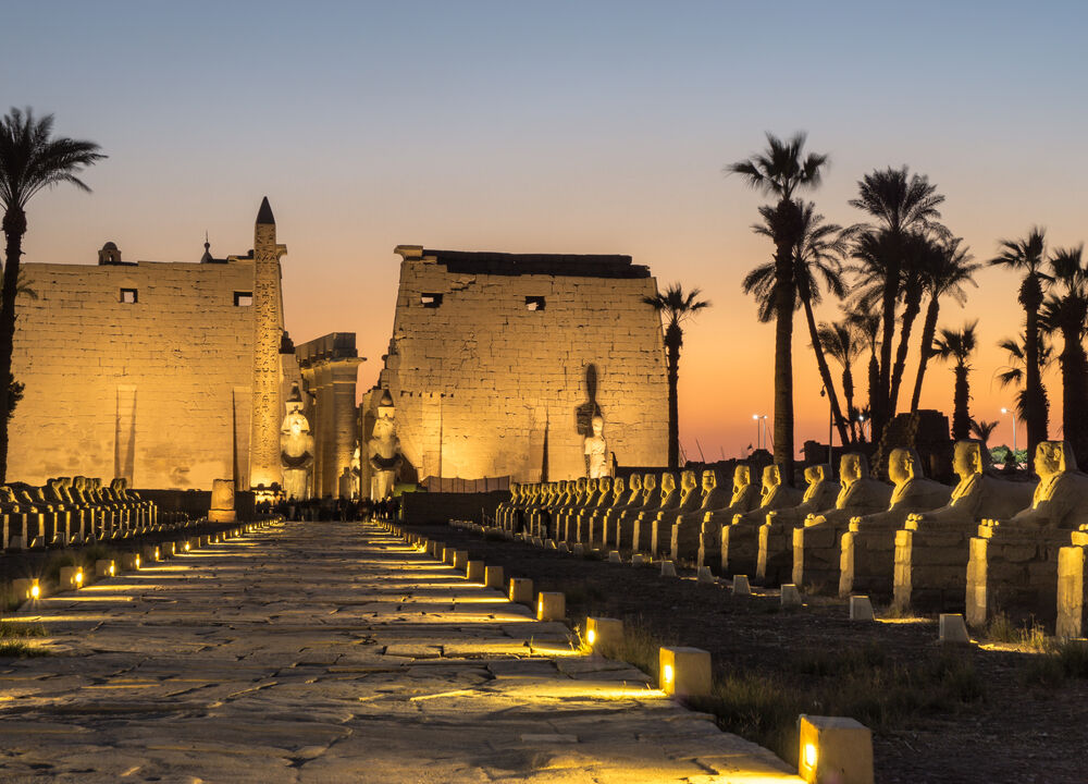 Efter lunch utforskar vi templen i Karnak och Luxor, där kolonnerna reser sig som stenens skogar mot himlen och hieroglyferna berättar om tro, gudar och faraonernas makt. Skymningen faller mjukt över tempelväggarna och fyller luften med stilla värme.