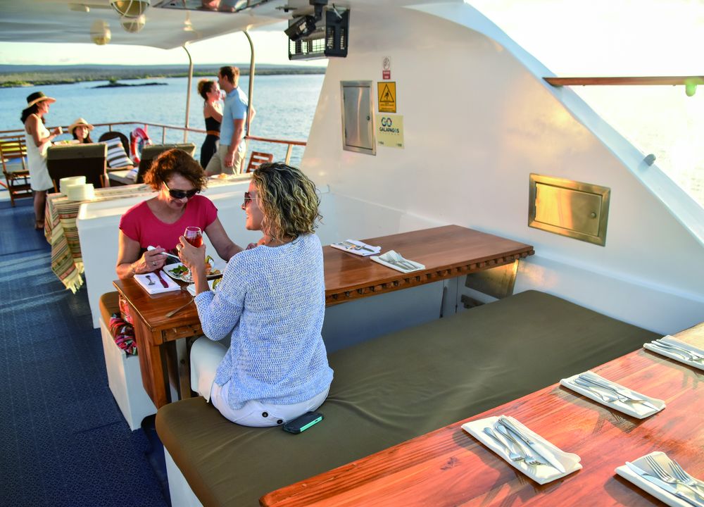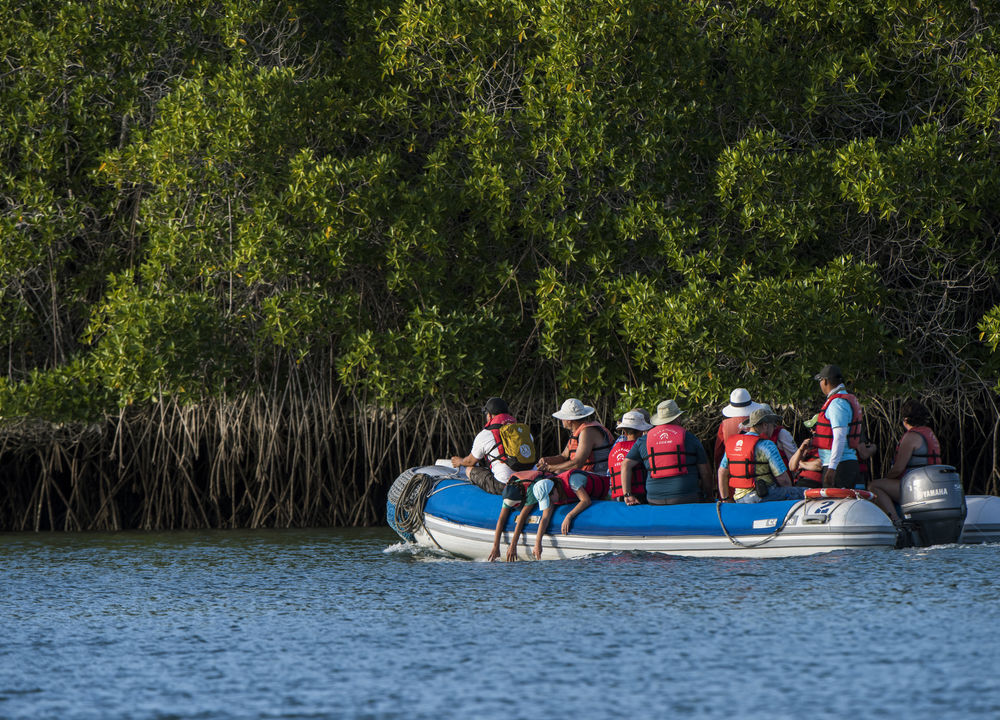 Eftermiddagen tillbringas vid Punta Carrion på ön Santa Cruz Charles. Vi tar oss in med små båtar vid ingången till Itabaca-kanalen i en lagun med turkost vatten där vi kan observera hajar, blåfotade sulor och olika fiskar.
