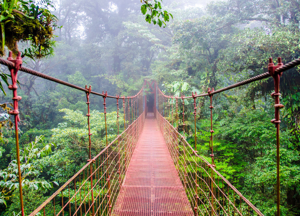 Morgonvandring bland trädtopparna på Arenals hängande broar tillsammans med naturguider. Kolibrier, sengångare, vrålapor och vackra fjärilar syns ofta längs vägen. Eftermiddagen ägnas åt nationalparken Arenal med en kortare vandring i regnskogen och bad i de varma källorna i Ecotermales vid foten av den ännu aktiva vulkanen. Middag vid de heta källorna.