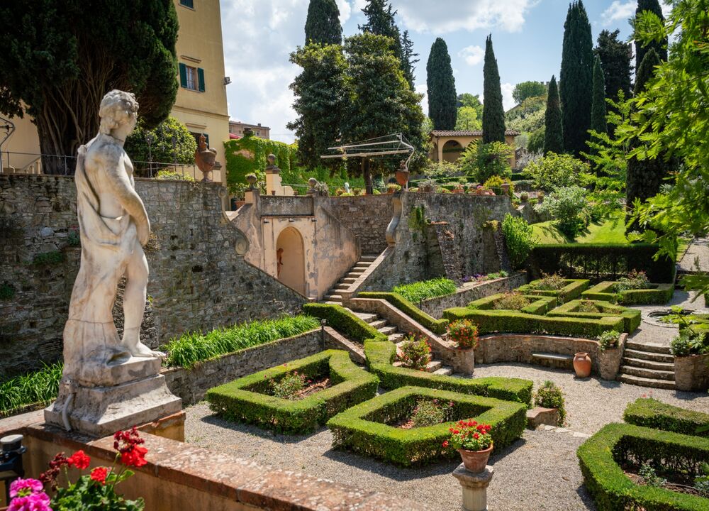 Vi har en tidig avresa från Arlanda och efter byte av plan i Köpenhamn landar vi på Florens flygplats vid halvtolvtiden på förmiddagen. Vår lokala guide på resan Helen de Barros väntar i ankomsthallen och hon och resans ciceron Peter Englander tar oss med till den väntande bussen. Hotel Loggiato dei Serviti*** ligger centralt i en byggnad från 1400-talet, bara fem minuters promenad från katedralen Il Duomo med den omtalade kupolen som ritades av arkitekten Brunelleschi på 1400-talet. Vi checkar in och äter en lätt lunch innan det är dags för vårt första trädgårdsbesök. Det är en halvtimmes promenad förbi historiska palats och andra sevärdheter i Florens centrum till trädgårdarna Giardino di Boboli. Parken anlades på 1400-talet vid Palazzo Pitti på uppdrag av Cosimo di Medicis hustru Eleonora di Toledo. Från början var parken bara öppen för familjen Medici men öppnades för allmänheten år 1766. Boboli anses vara en av världens viktigaste renässansträdgårdar med mästerverk som ”Grotta Grande”, fontäner, skulpturer och konstverk som visar Florens konstnärliga arv från 1500 till1700-talet. Boboli står sedan 2013 upptagen på Unescos världsarvslista. Vi återvänder till hotellet med buss och avslutar dagen med att äta middag tillsammans och lära känna varandra.