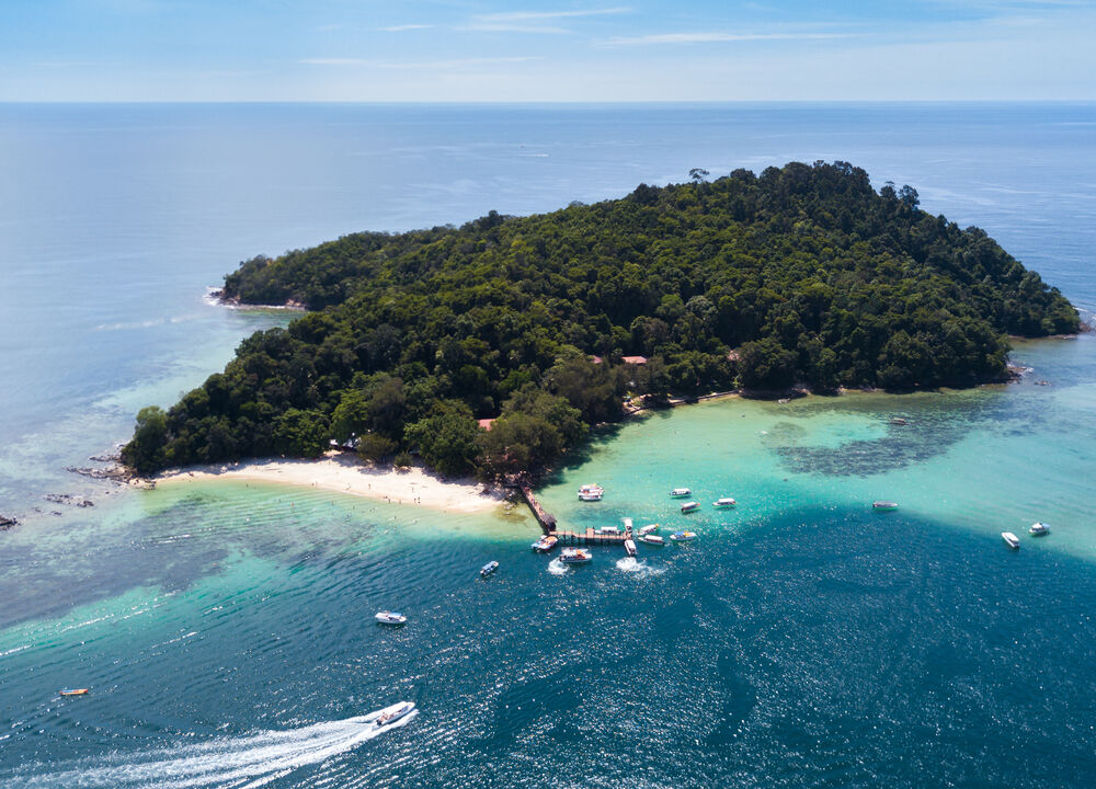 Båttur ut i Tunku Abdul Rahman Park, övärlden precis utanför Kota Kinabalu där havet snabbt byter färg från hamnens gråblå till klar turkos. Först väntar Gaya Island, den största av öarna, med låglandsregnskog som fortfarande känns förvånansvärt vild så nära fastlandet. Vandring genom kustvegetation, mangrove och skuggig skog, där guiden berättar om växter, djur och hur livet här ute alltid har varit kopplat till havet. Namnet på nationalparken är inte en slump: Tunku Abdul Rahman var Malaysias första premiärminister, och parken är som ett litet marint minnesmärke – men framför allt en plats där naturen får ta plats.