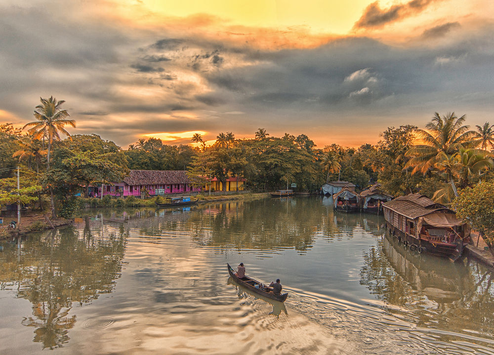 Vi beger oss till orten Alleppey, vars hamn är utgångspunkt för några av områdets ikoniska husbåtar. Bilresan beräknas ta cirka 1,5 timme. Väl framme hälsas vi välkomna av det lilla teamet, går ombord, och vår stilla kryssning kan börja.