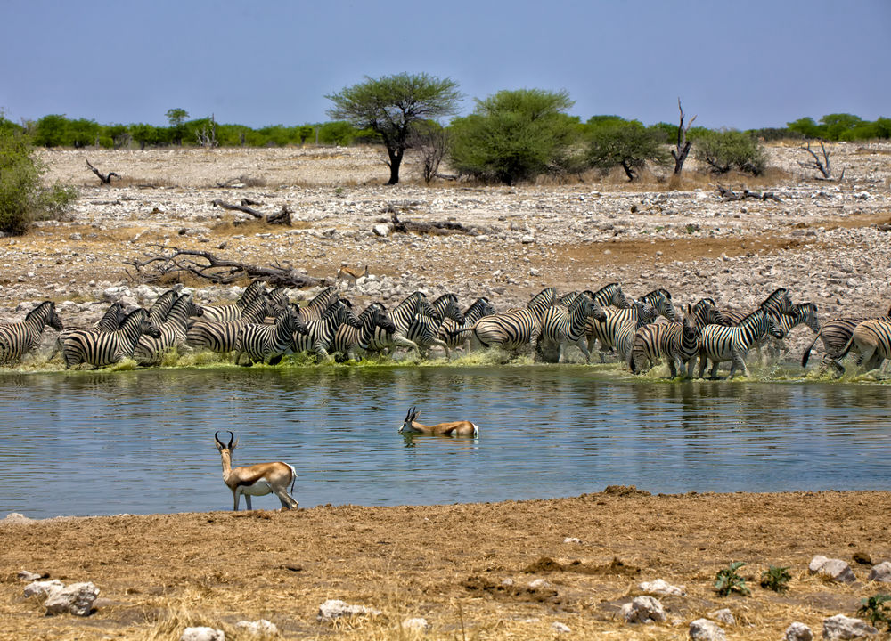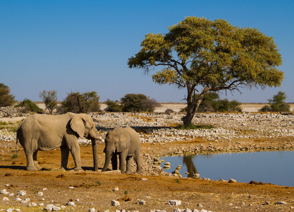 Hela förmiddagen ägnas åt safari inne i nationalparken. Etosha är hemvist för fyra av de fem stora; elefant, lejon, leopard och noshörning. Bara den afrikanska buffeln saknas. Under torrperioden i Etosha kretsar allt liv kring vattenhålen. En mängd olika djurarter samsas vid dem och det är svårt att tröttna på skådespelet. På eftermiddagen åker ni på safari i lodgens djurreservat, avnjuter en "sundowner" och kanske ett dopp i poolen innan middagen.