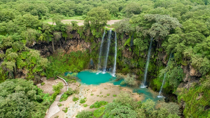 Längs kusten breder frodiga palmlundar ut sig, och vägen leder till staden Taqa med sitt välbevarade slott från 1800-talet. Här får vi en bild av hur ett omaniskt kustsamhälle såg ut under tiden före oljan. Vi fortsätter till ruinerna av Sumhuram, en gång en blomstrande hamn för handeln med frankincense. Platsen, idag ett världsarv, sägs ha haft kopplingar till drottningen av Saba. Vid Khawr Rawri öppnar sig utsikten mot Indiska oceanens turkosa vatten. På vägen mot Mirbat stannar vi vid Bin Ali-graven, med sina karaktäristiska vita kupoler, och avrundar med ett besök vid den lummiga källan Ayn Razat, där Dhofars grönska samlas.