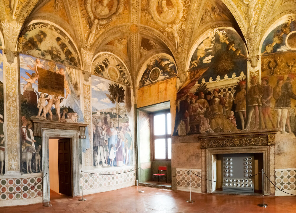 Komplexet omfattar cirka 500 rum, sju trädgårdar åtta innergårdar med kyrkor och torg på en 34 000 m² stor yta, vilket gör det till det sjätte största palatset i Europa. Vi besöker borgen Castello di San Giorgio med Andrea Mantegnas berömda fresker i Camera degli Sposi– bröllopsrummet – samt Isabellas bröllopssvit.