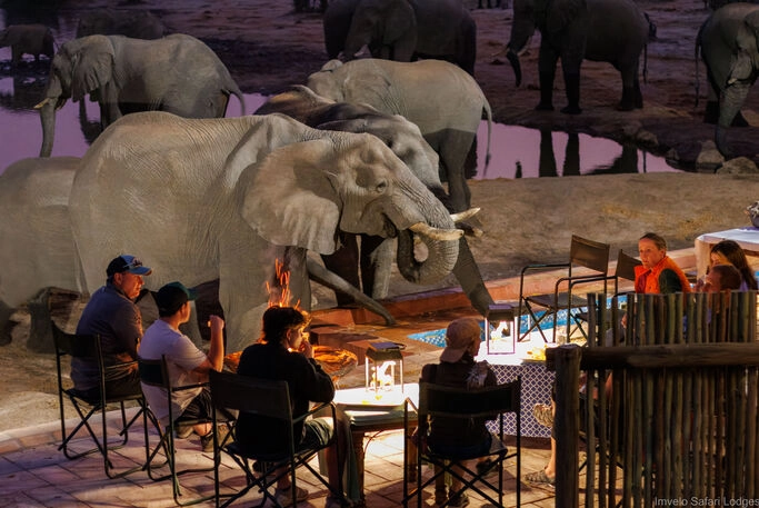 Att uppleva sundowners (kvällsdrinkar) vid de berömda Nehimba Seeps är ett måste under torrsäsongen. Nehimba Seeps är ett skyddat naturområde och en av få naturliga vattenkällor som finns tillgängliga året runt i den vidsträckta Hwange nationalpark. Källorna har använts sedan urminnes tider av sanfolkets jägare och i dag lockar de stora hjordar av elefanter som gräver efter mineraler och vatten. Denna heliga plats bjuder på oförglömliga upplevelser. Tillbaka på lodgen väntar middag.