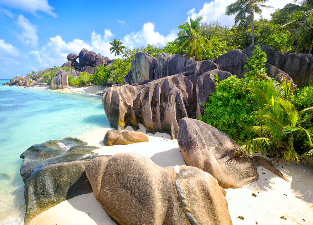 Dag 6-9. La Digue. Instagramvänliga och vidunderligt vackra stranden Anse Source d'Argent är ett måste med sina dramatiska granitklippor och kristallklara vatten. Cykel är annars det vanligaste transportmedlet på La Digue. Besök L'Union Estate Park och cykla förbi kokosnötsproduktion och vaniljodling. Här finns också en och annan jättesköldpadda att hälsa på. Ta en cykeltur runt hela ön, stanna till för lunch eller en fruktshake på Chez Jules vid Anse Bananes. En kanske inte längre så välbevarad hemlighet är stranden Anse Cocos. Cykla till Anse Cocos och sedan är det en 20 minuters vandring till själva Anse Cocos. Kommer man tidigt på morgonen har man stranden helt för sig själv. Vill man ha en lite mer krävande vandring vandrar man upp till Nid d'Aigle – Örnens näste, öns högsta punkt, för en fantastisk utsikt. Man kan också ta en taxi till restaurangen Belle Vue och göra en lite enklare vandring upp till toppen utan att få allt för mycket mjölksyra i benen. [F]