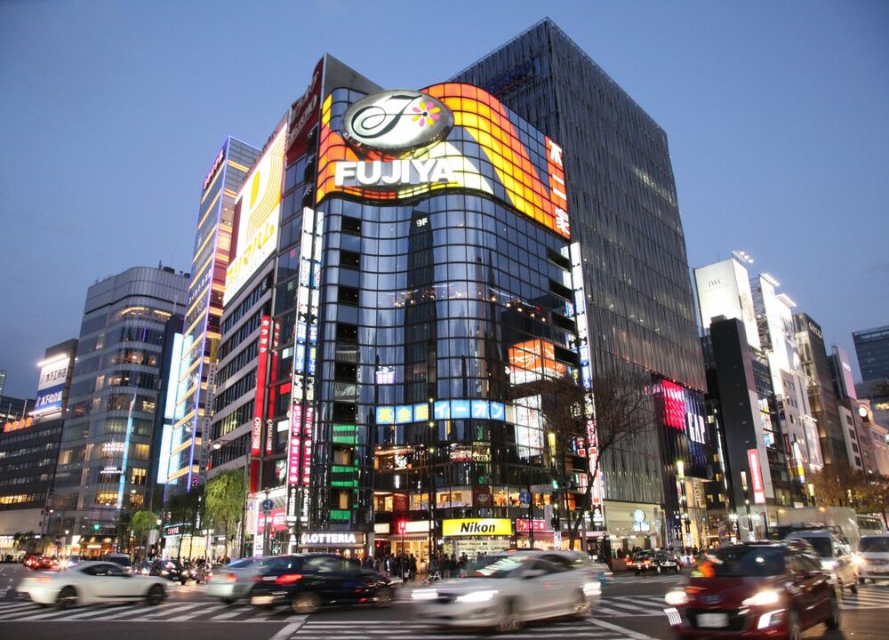 Under bussfärden mot dagens nästa destination passerar vi genom Ginza, ett område känt för sin moderna arkitektur och sina exklusiva butiker.