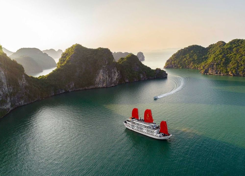I Ha Long går vi ombord på en modern båt för kryssning bland tusentals kalkstensöar och dramatiska klippformationer som reser sig ur Tonkinbukten. Under färden serveras...