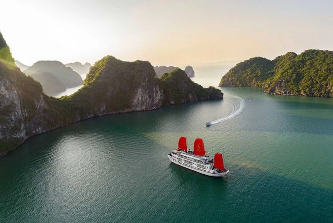 Färden går mot öster, mot Ha Long eller ”Där draken kliver ner i havet”. De närmaste timmarna tar oss genom odlingarna i Röda flodens delta, där byborna arbetar på risfälten, tar djur till marknaden på cyklar och plöjer fälten med sina stora vattenbufflar. I Ha Long gör vi en kryssning. Båten lämnar hamnen och vi njuter av lunch medan båten glider mellan sockertopparna i Ha Long-bukten. Detta örike räknas till en av världens vackraste arkipelager och är ett Unesco-märkt världsarv. Efter denna mäktiga syn av buktens kalkstensformationer återvänder vi till Hanoi för ännu en övernattning i huvudstaden.