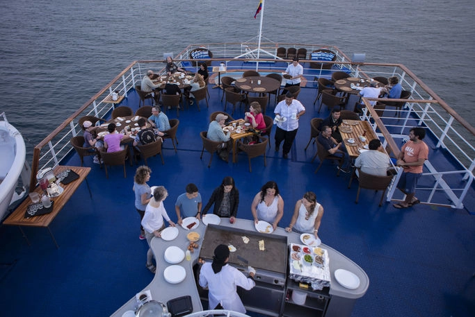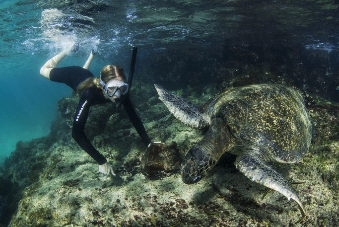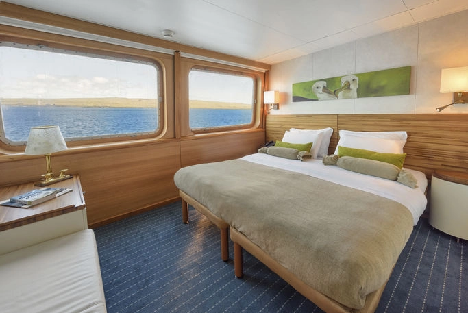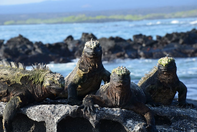 Förmiddagen tillbringar vi på den lilla ön South Plaza, täckt med en matta av röd suckulent och opuntiakaktusar, tillsammans med sjölejon, svalstjärtsmås, fregattfåglar och landleguaner, dessa uråldriga drakliknande ödlor. På eftermiddagen lägger vi till vid ön Santa Fe vars vita sandstrand är hem för sjölejon och ön hyser fler endemiska arter som galapagoshök, finkar och härmtrast. Snorkling för den som önskar