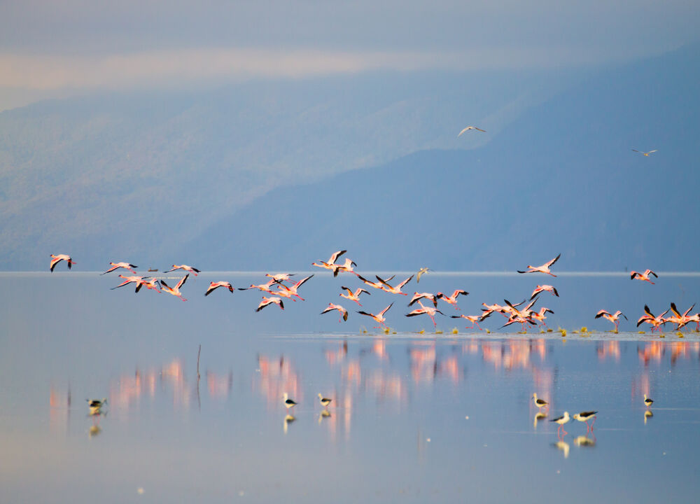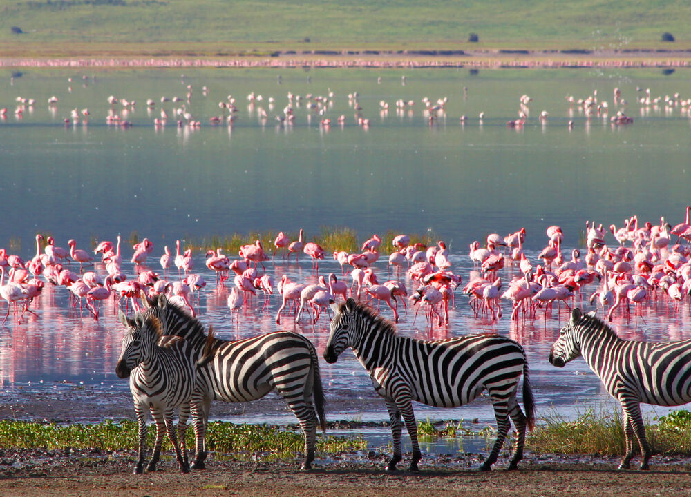 Turen går ner i kalderan, som är den kraterliknande formation som skapas när en vulkan kollapsar. Förmiddagen tillbringas på safari. Mitt i kalderan finns en sjö som ofta besöks av flamingor och sjöns stränder böljar därför i rosa nyanser. Vilda djur av alla slag lever här i full frihet. Vi har till och med chans att se den sällsynta svarta noshörningen. Åter på lodgen vid lunchtid. Resten av eftermiddagen är fri för egna aktiviteter. Pool finns. Det går även att besöka en närbelägen massajby (cirka 25 USD/pers.). Övernattning på lodgen, belägen på kraterkanten.